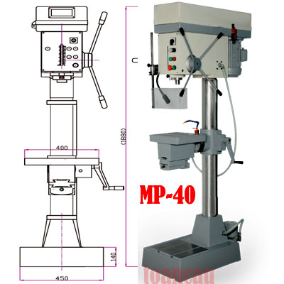 Máy khoan 40mm Motor 2 tốc độ MP-40 KTK Đài Loan là loại khoan bàn Pulley công suất lớn. Máy thiết kế cao 1,8m sử dụng kiểu truyền động Pulley nhưng có kết hợp Motor 2 cấp tốc độ.