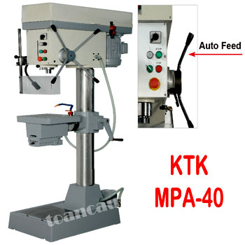 Máy khoan bán tự động 40mm MPA-40 là loại khoan bàn cao 1,8m truyền động Pulley, sử dụng loại Motor 2 tốc độ. Máy được thiết kế theo kiểu dáng mẩu mã của máy khoan Italy châu Âu.